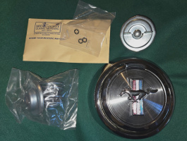 #7 Fuel cap, pop-open, Mach 1 enblem, also small Mustang emblem for non-Mach 1 use, sending assembly, fuel tank.