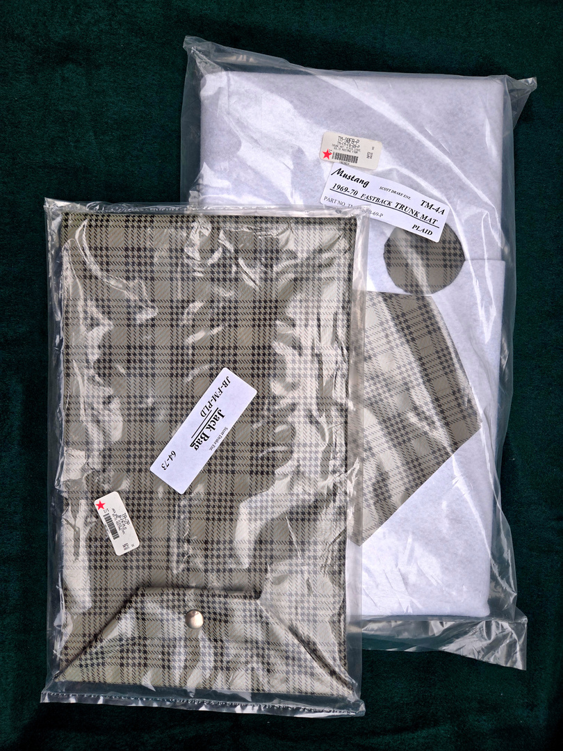 #24 Vinyl trunk mat, plaid and vinyl jack bag